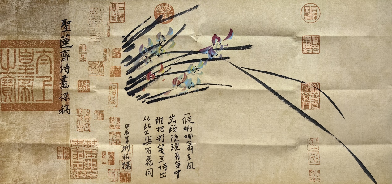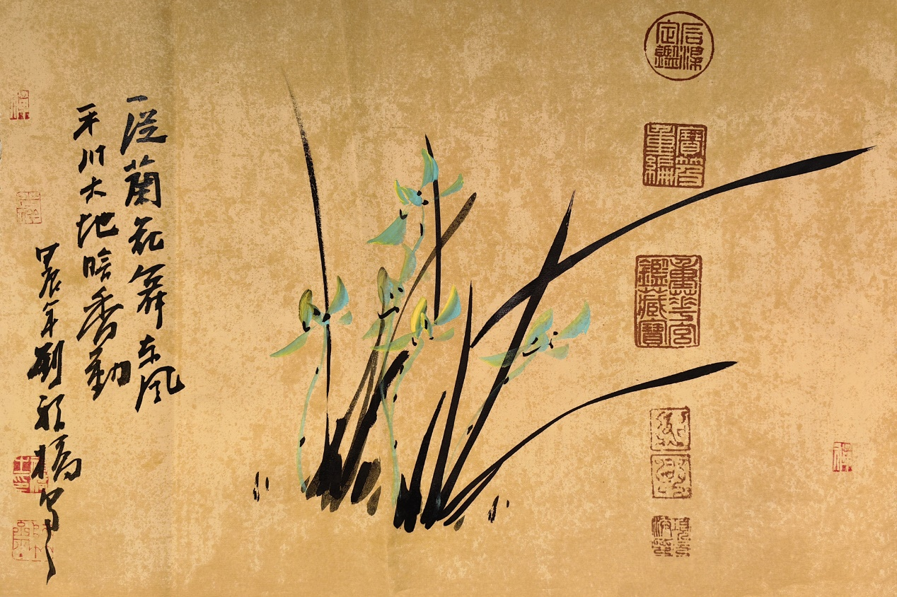 画兰曰“撇”叶飘然,笔底幽香地天宽。若不香从花草发,彩笺何以得清观。