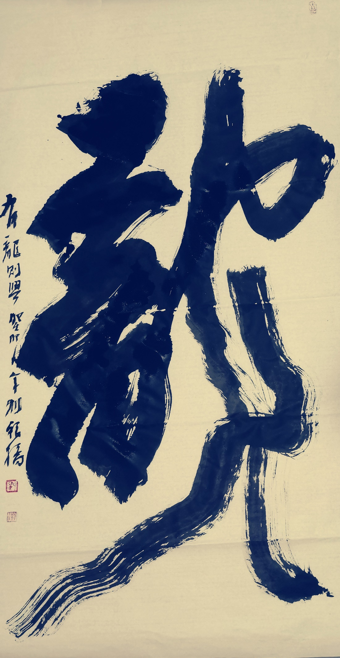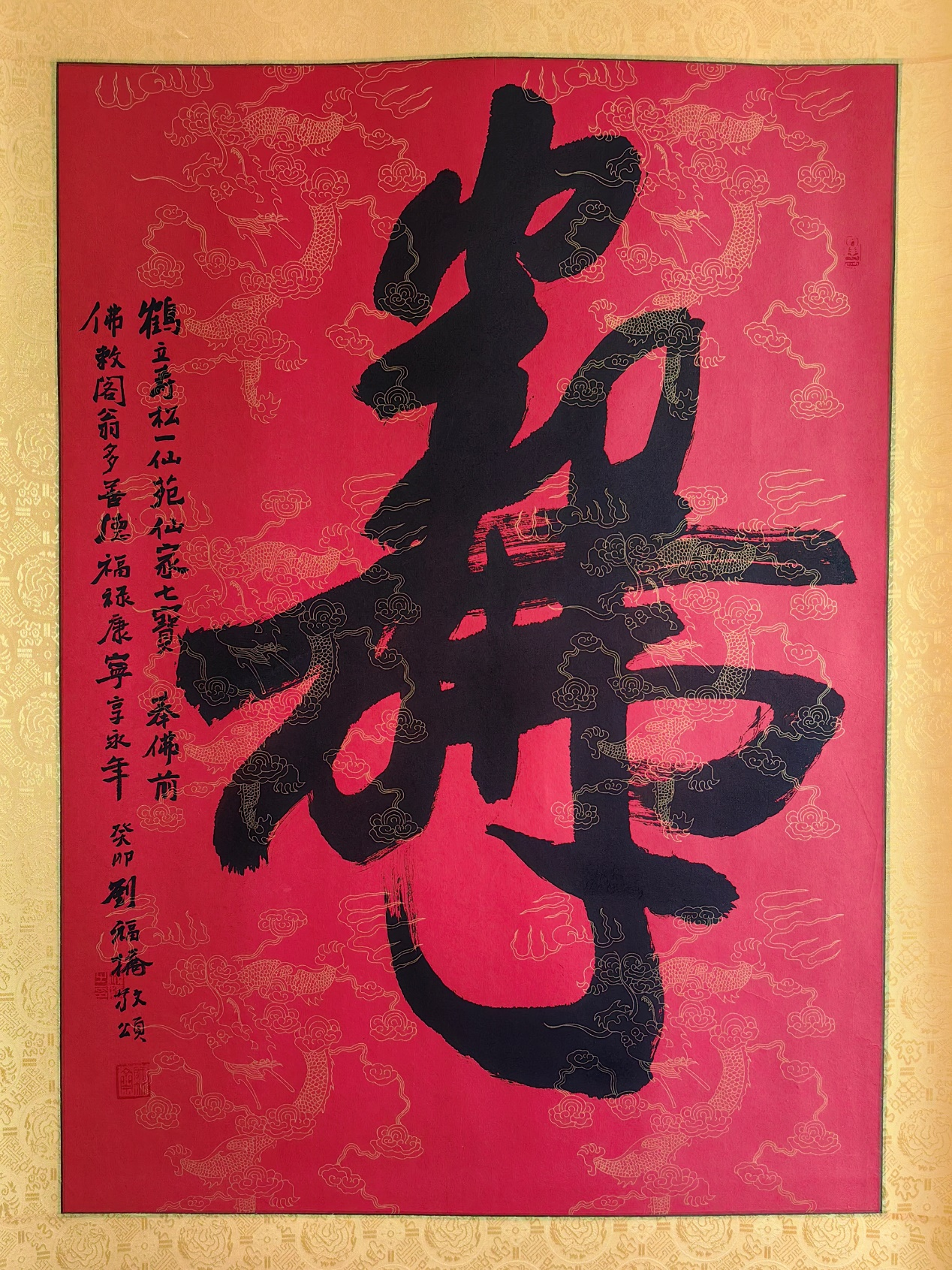 为沈鹏先生九十寿诞独创此字,意寓鹤佛寿一体同春志贺