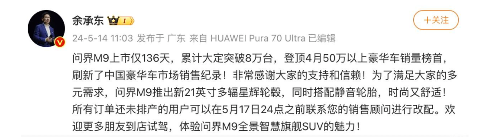 华为带飞,问界M9自带光环
