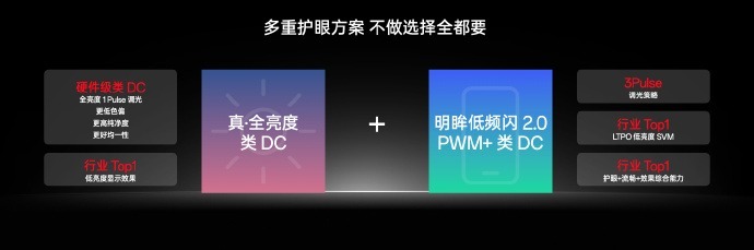一加 13还支持明眸护眼2.0、全亮度类DC调光、明眸低频闪 2.0 等多种屏幕调光方案,号称”多重护眼方案,不做选择全都要“。