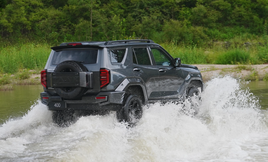 而在外观设计方面,坦克400燃油版与Hi4-T版本的差别不大。不过,由于是燃油版车型,这让其尾标将换成“坦克400”。另外,新车接近角为33°、离去角为31°,最小离地间隙235mm;涉水深度则有800mm。