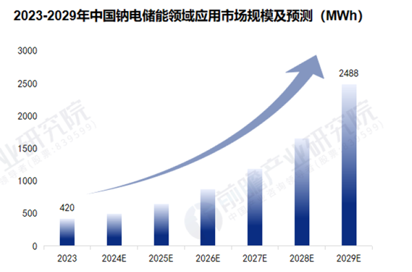 当前,储能领域为我国钠离子电池商业化应用的重点领域,2016-2023年期间,中国储能行业投运累计装机规模持续增长,在2021年进入快速增长阶段。工信部提出,高性价比的钠离子电池有望成为锂离子电池的重要补充,尤其是在固定式储能领域将具有良好发展前景,综合来看,中短期内钠电储能规模有望快速增长,前瞻初步统计到2029年,中国钠电储能领域应用规模将接近2500MWh。