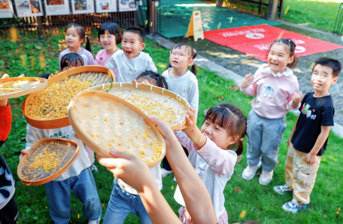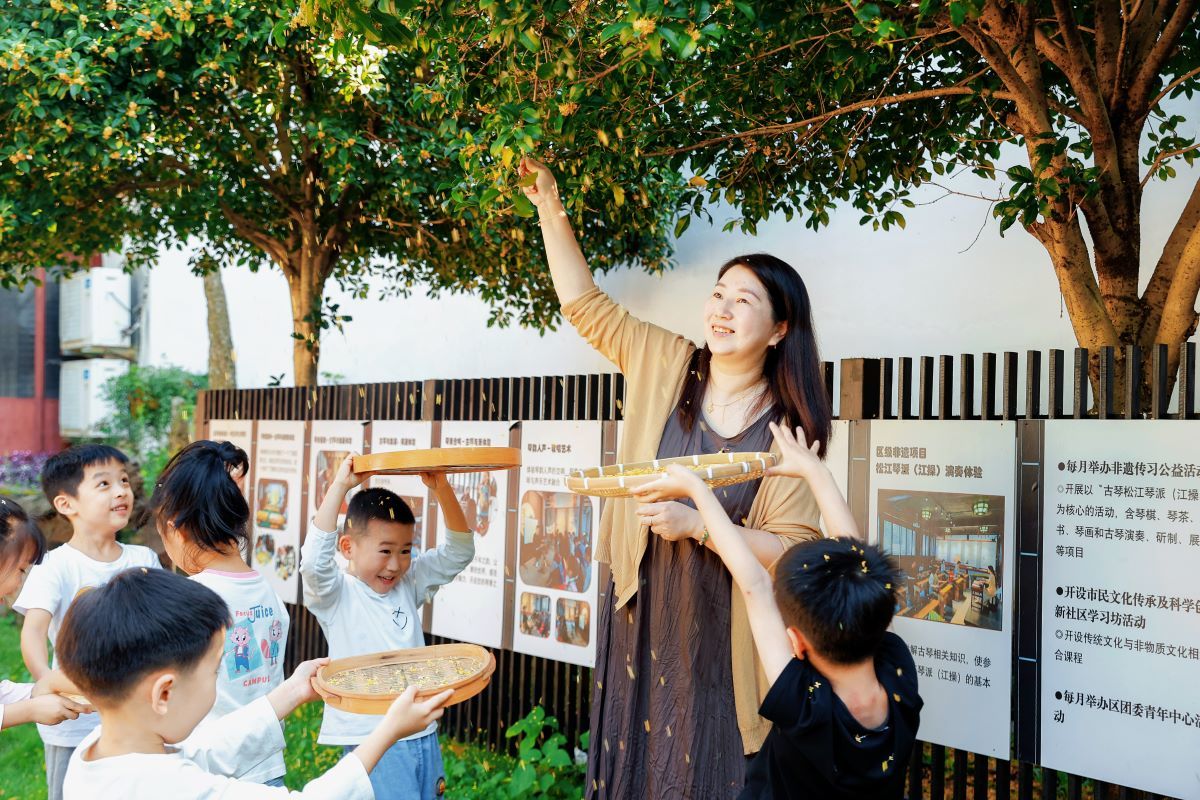 摇桂花、桂花贴画、体验古琴弹奏……幼儿园孩子走进百年古宅,参与非遗社教活动,感受传统文化的魅力。 10月18日上午,松江区机关幼儿园与素园琴馆(钱以同宅)开展馆校合作、结对共建,双方将通过整合优势资源,将传统文化融入幼儿园户外活动中。