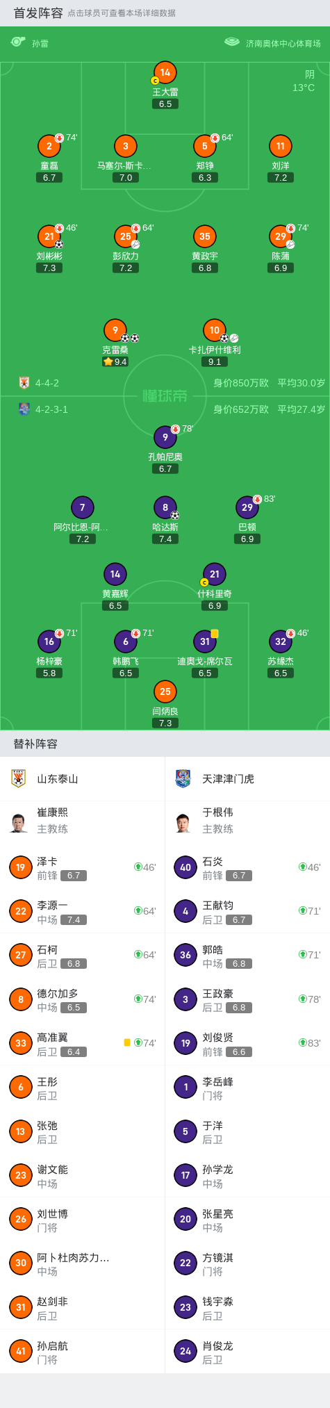 第37分钟,陈蒲左路变向后送传中,卡扎前点头球破门,泰山2-0领先!