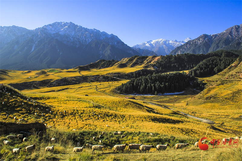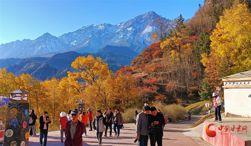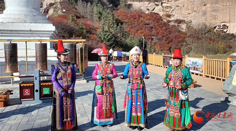 雪山之下,层林尽染,秋日的马蹄寺美不胜收,裕固歌声从北寺传来,身着裕固服饰的歌者为游客带来最炫民族风。