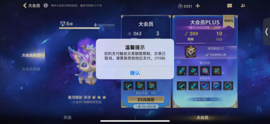 1、大会员购买多次后显示额度限制,需要切换点券处充1元刷新即可解决!