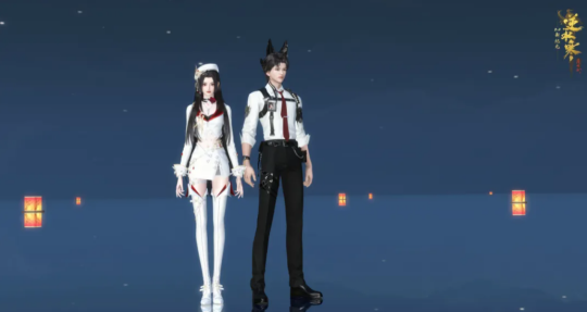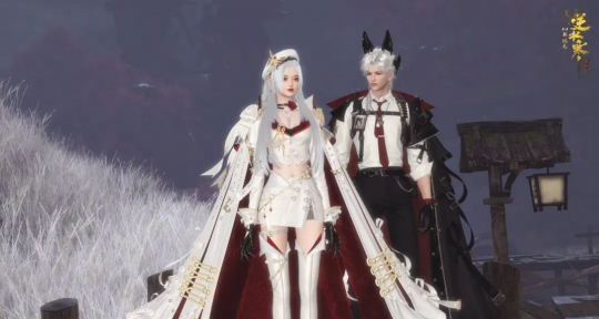 3)时装【暮夜陷落&白夜俘获】自带单人动作【碎夜留痕】及双人动作【繁夜追袭】。