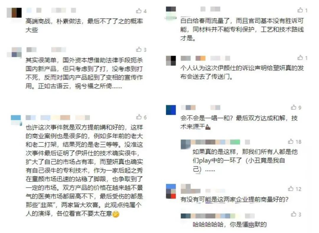 不过,华东医药此举也给谷雨春的塑妍真·真妤带来了不小的热度,一些网友表示,“伊妍仕的诉讼声明给塑妍真的发布会送去了传送门”、“白白给谷雨春流量”等,基于此,有一种观点认为,此次事件也可能是相互炒作,是双方为博流量和关注,互通有无、共同合作的结果。“两家皆大欢喜”。