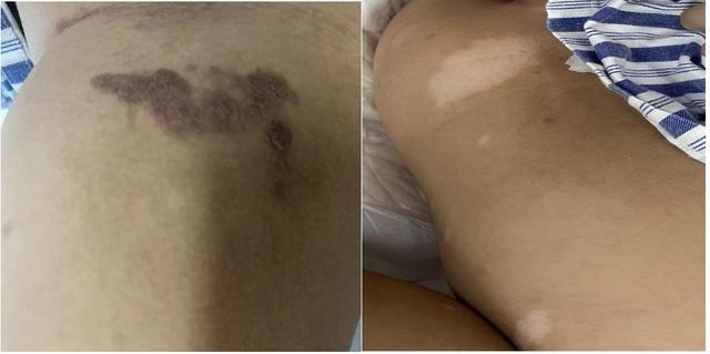 直到两年前,翔翔父母带着孩子到郴州市儿童医院就诊,医生一眼看出了端倪——这不是普通的“胎记”,而是牛奶咖啡斑,提示神经纤维瘤病变!立即安排神经骨骼影像学等检查。