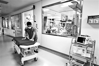 北京安贞医院通州院区重症监护室内,医务人员正在忙碌