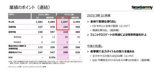 近日,世嘉发布其2024-2025财年(2023年4月至2025年3月)Q1财报,数据显示,该司达成: