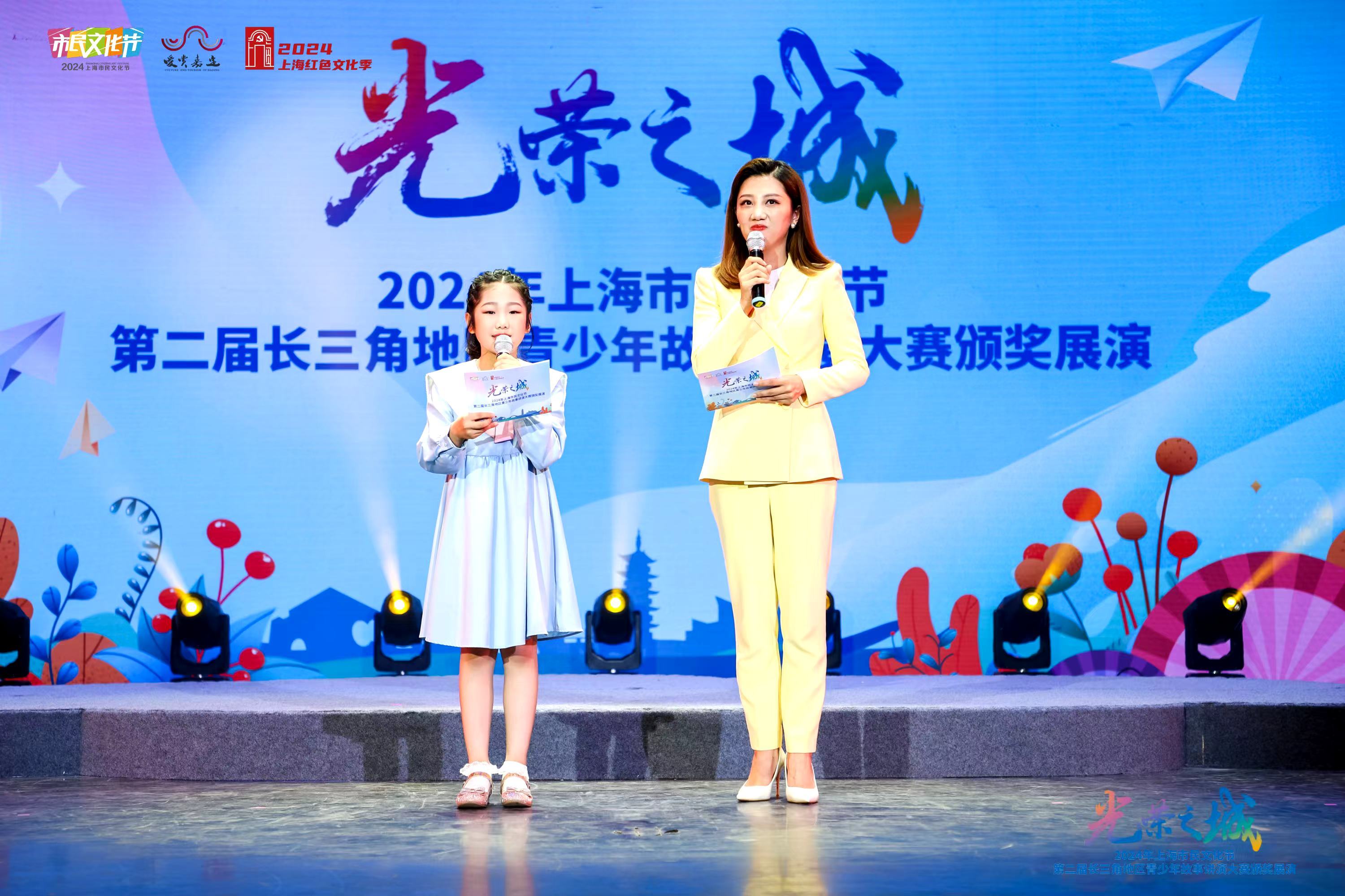10月20日,“光荣之城”2024年上海市民文化节第二届长三角地区青少年故事讲演大赛展演在嘉定区文化馆秀舞台举行。来自江、浙、沪、皖的娃娃们纷纷走上台,说学逗唱、挥洒自如,在故事里回忆往昔、播撒心声,传承红色文化。