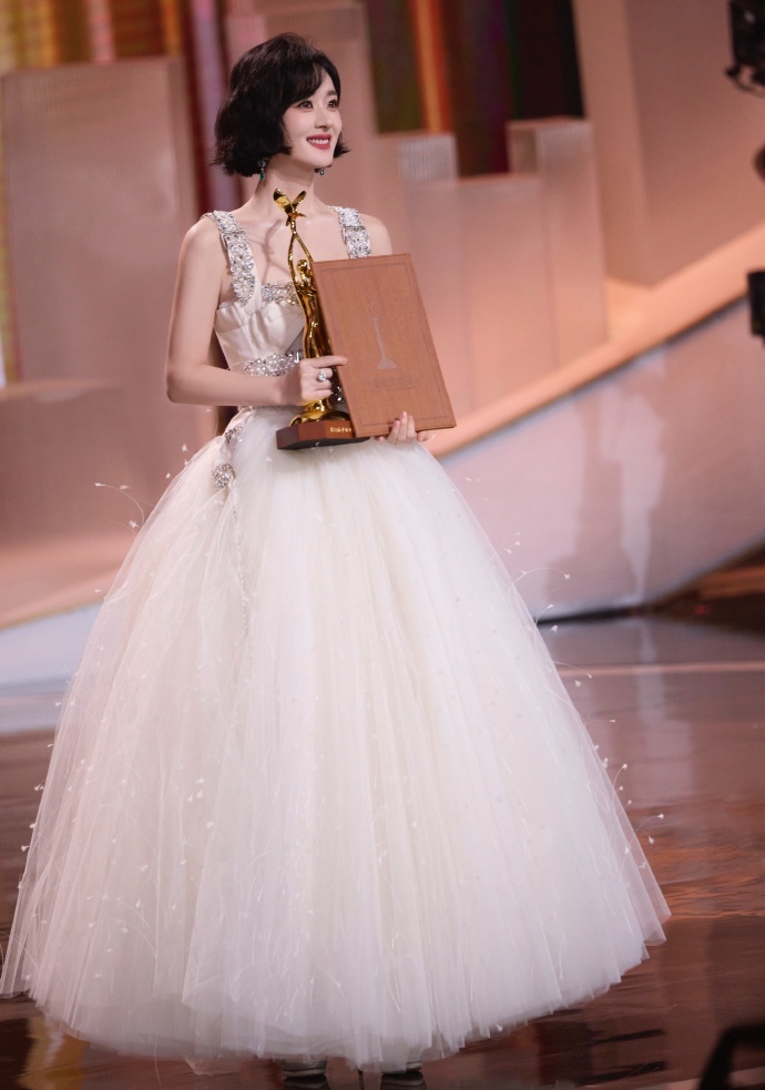 2016年,赵丽颖曾凭借《花千骨》获得第28届中国电视金鹰奖“视后”,此次获奖已是其第二次“封后”。