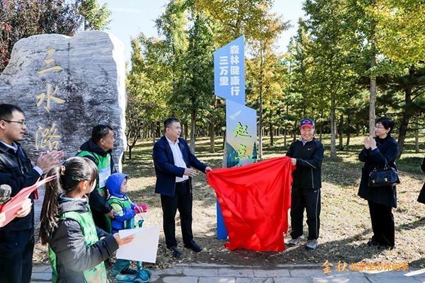 中国林场协会会长魏殿生和潞城镇镇长李长风为“三万里森林健康行”起点揭牌。“三万里森林健康行”将向全国林场进行推广,精心规划的路线穿越各林场辖区内多个特色区域,涵盖茂密的森林、翠绿的草地、生态的湿地等各种特色生态,使市民能够近距离领略林场独有的壮丽自然景观。