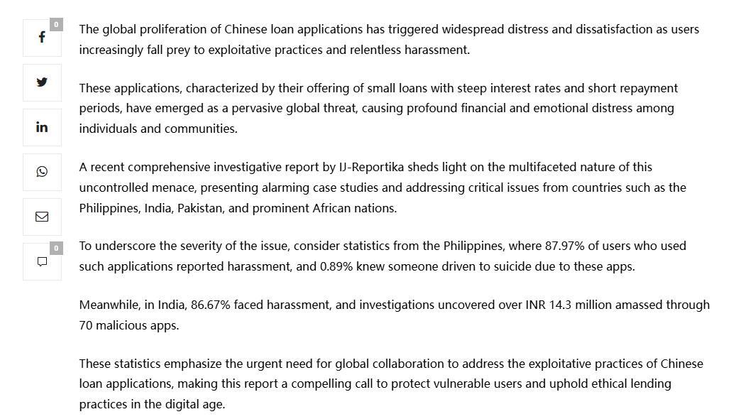 更大的不确定还是来源于国际社会对国内助贷平台的指责,《The Dark Side of Chinese Loan Applications》一文中指出,中国贷款申请的全球激增引发广泛的困扰和不满,因为用户越来越多地成为剥削行为和无情骚扰的牺牲品。