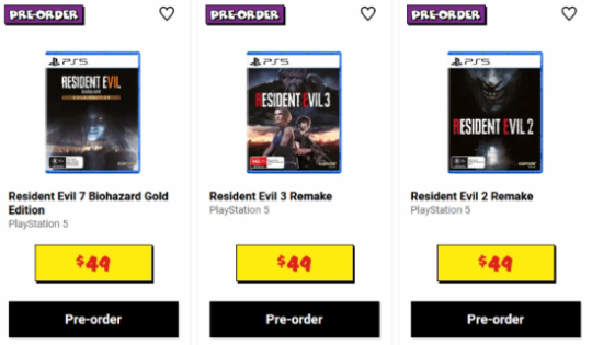 据国外玩家@hybroid爆料,卡普空《生化危机2重制版》《生化危机3重制版》以及《生化危机7》的PS5实体版本的销售信息在一家位于澳大利亚的零售商出现。据称,PS5实体版将于2024年12月6日开启预购,每份价格为49澳元(约合人民币233元)。