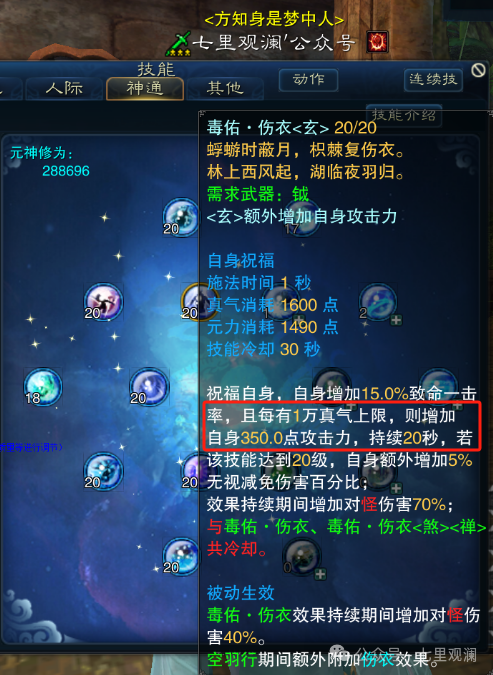 先来看看 神通伤衣与真气的挂钩程度
