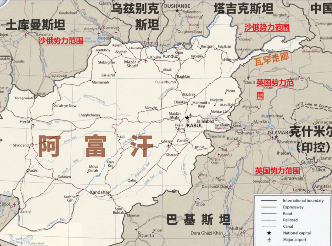 18世纪中叶开始,英国以孟加拉地区为突破口,利用92年的时间全面殖民了南亚,为了确保殖民地的安全,三次向北发动对阿富汗的战争,最终迫使阿富汗成为了英国的附属国。