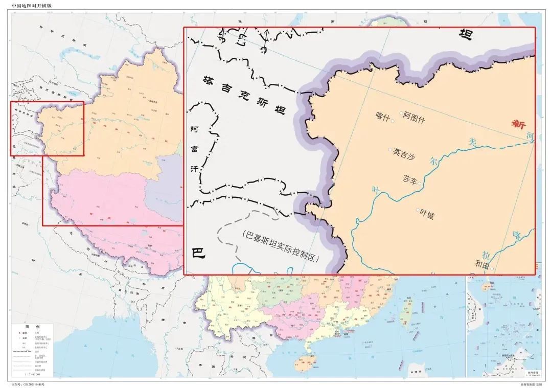 ▲自然资源部发布的2022版发布的中国地图来看,中塔南段边境仍为虚线