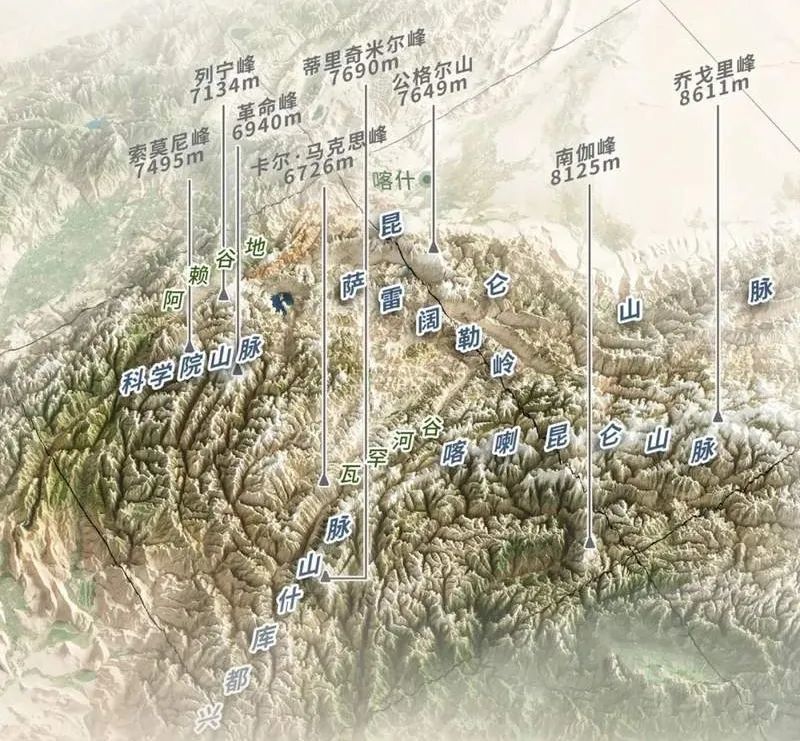 ▲帕米尔高原地形图