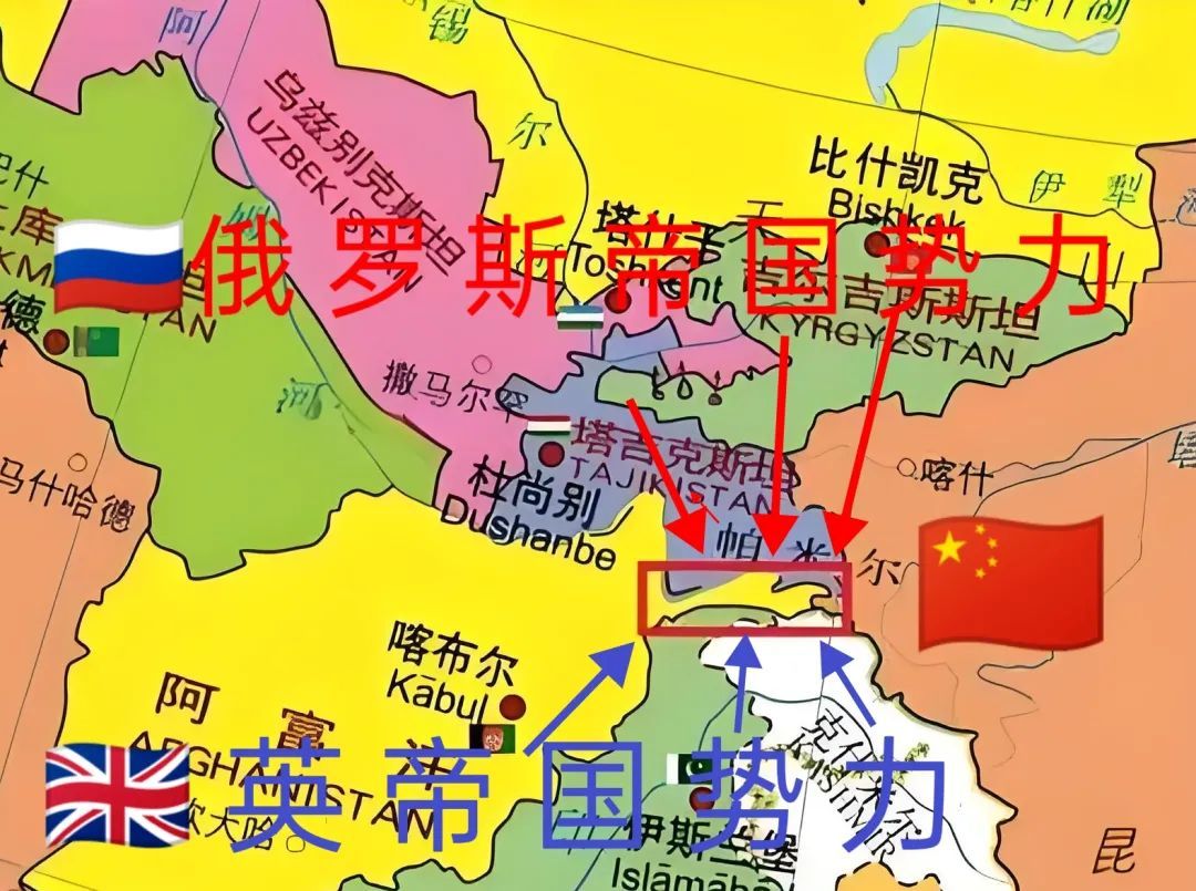 俄国占有了如今的塔吉克斯坦全部地区,帕米尔高原东部归清廷所有,而英俄双方以瓦罕走廊作为缓冲地,避免英俄势力直接接触。