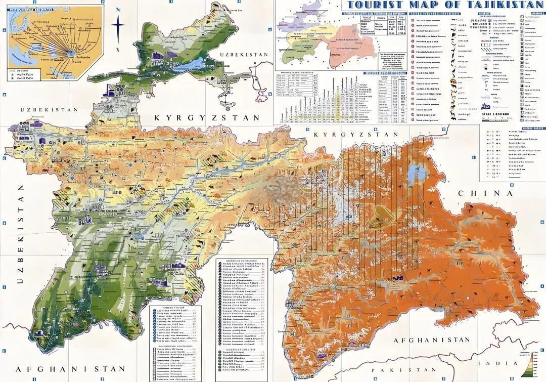 ▲塔吉克斯坦地形图,93%的国土为山区