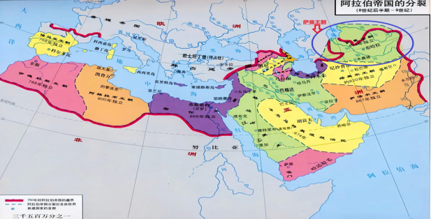 ▲阿拉伯帝国东扩,蓝圈处为波斯人主导的萨曼王朝