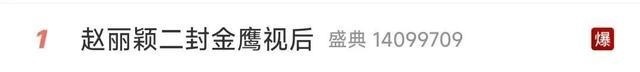 话题 #赵丽颖二封金鹰视后#迅速登上微博热搜第一,引爆热搜。