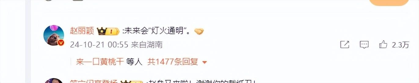 赵丽颖在李光洁账号下回应:未来会“灯火通明”。