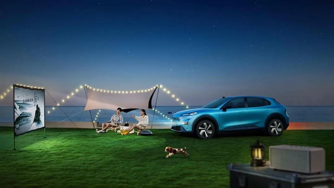 另外,深蓝 S05也是30万内少有能够具备百万像素智趣光影大灯的车型,搭载了行业领先 130 万像素大灯、 120 英寸投影画幅,搭配 2 个 25W 车外音响。在野外露营的时候,它可以随时随地打造户外 KTV 、 电影院等场景。