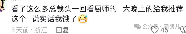 「看了这么多总裁,头一回看厨师的,大晚上给我推荐这个,说实话我饿了。」