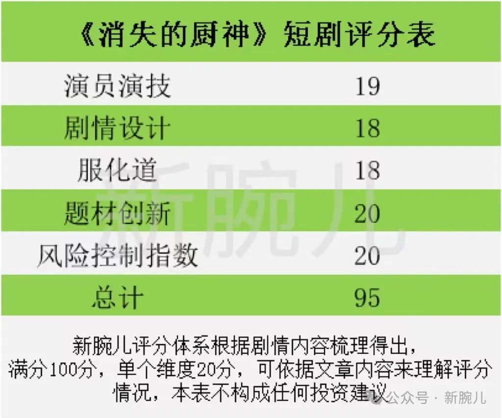 这部剧名为《消失的厨神》,为麦芽出品。如果单看名字,会主观认为是一部霸气厨神逆袭归来的短剧,实则不然。