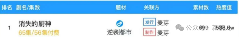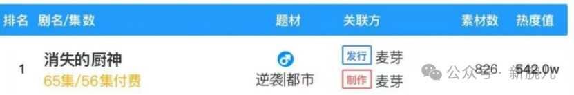 据WeTrue数据,10月19日,麦芽出品的《消失的厨神》排名第一,热度值542万,且连续3天霸榜行业前三。