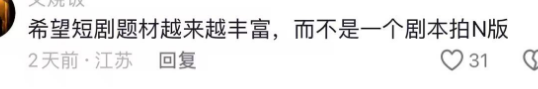 「希望短剧题材越来越丰富,而不是一个剧本拍N版。」