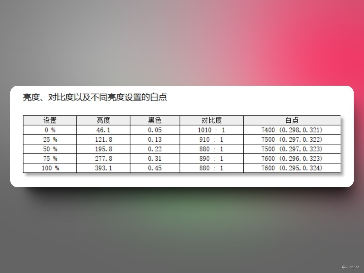 在亮度表现方面,HKC G27H7 Pro 通过 OSD 手动调节,能够实现 393.1 尼特的最大亮度和 46.1 尼特的最低亮度。这一亮度调节范围相当宽广,能够轻松应对不同的使用环境,无论是在强光照射的环境下,还是在低光条件下使用,用户都可以找到适合自己的亮度设置。IPS 面板的亮度调节通常较为平滑,而 G27H7 Pro 也延续了这一特点,确保亮度调整时的平滑过渡,进一步提升了用户的舒适感。
