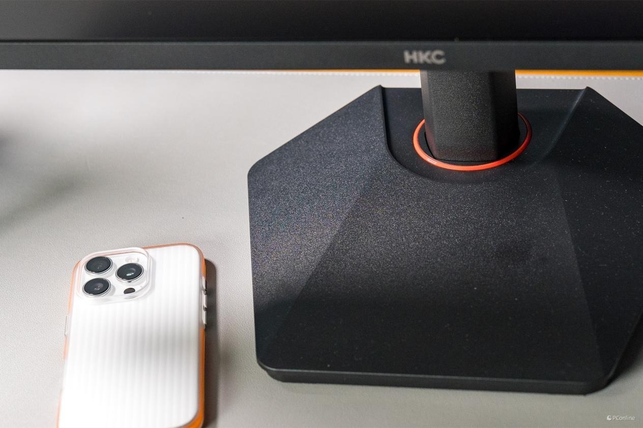 底座设计方面,HKC G27H7 Pro 选择了更加稳固且节省空间的六边形底座,相比常见的V型底座,六边形底座占地面积更小,释放了更多桌面空间,方便键鼠的摆放,让玩家的操作更加灵活顺畅。