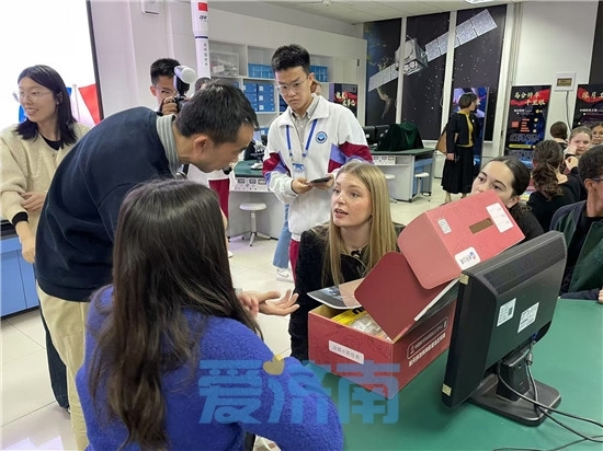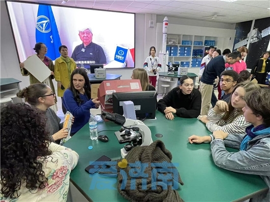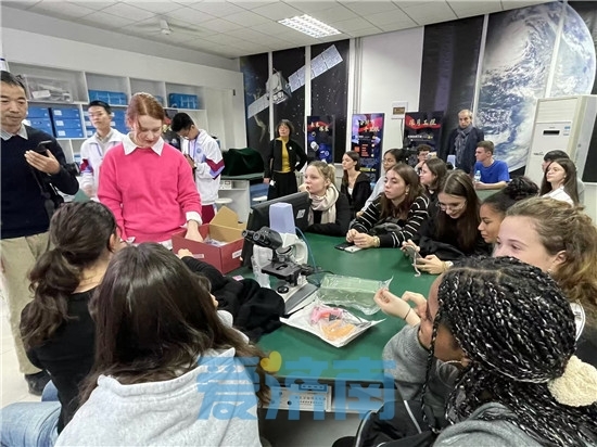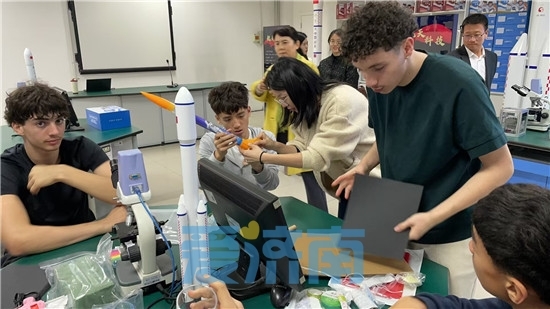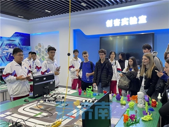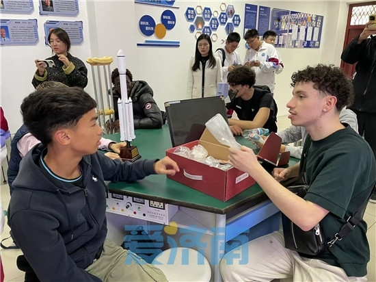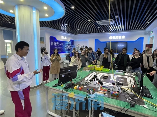 济南二中航天科技教育特色鲜明,下午3点,法国高中生来到二中科创教室,亲手体验科技小制作。