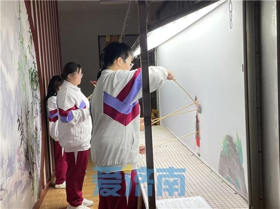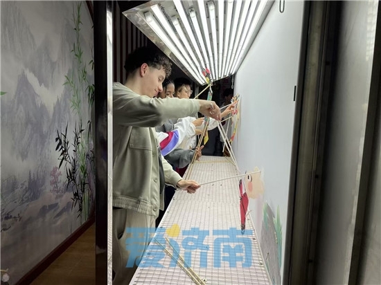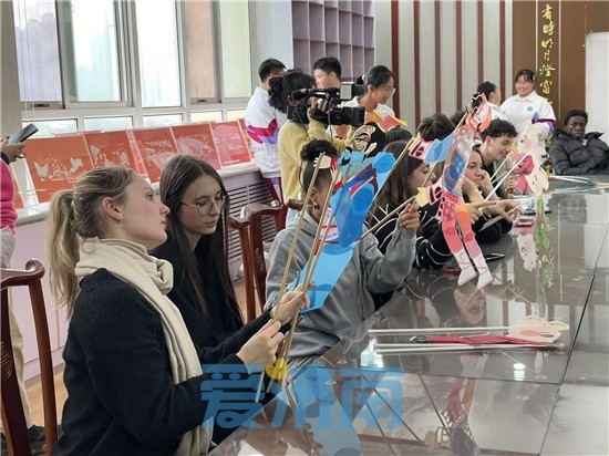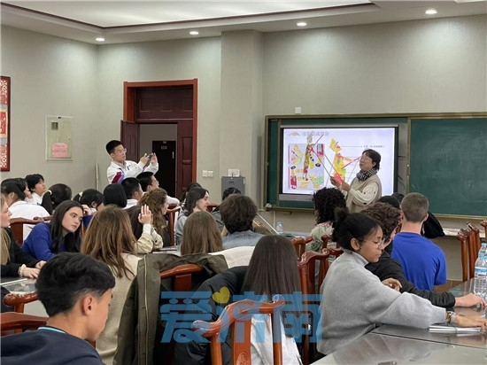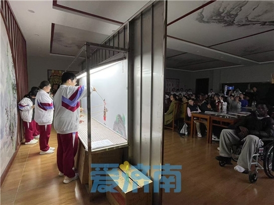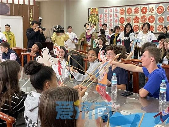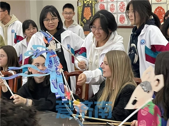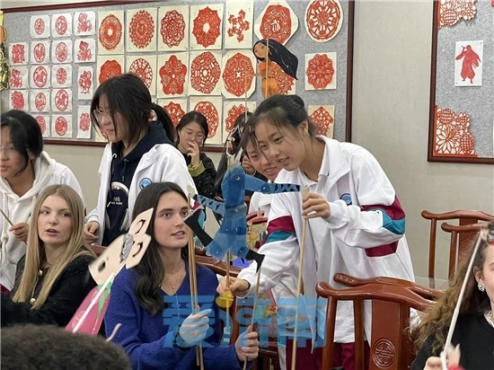 精彩的表演结束,法国学生纷纷拿起皮影,学习基本动作,二中学子热心指导。