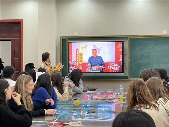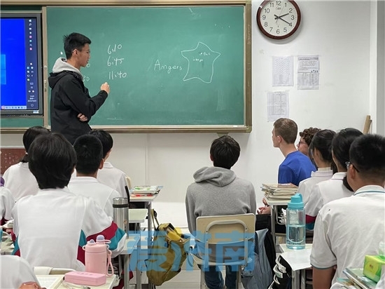 在其他教室,二中学子用英语为法国小伙伴介绍高中生活。