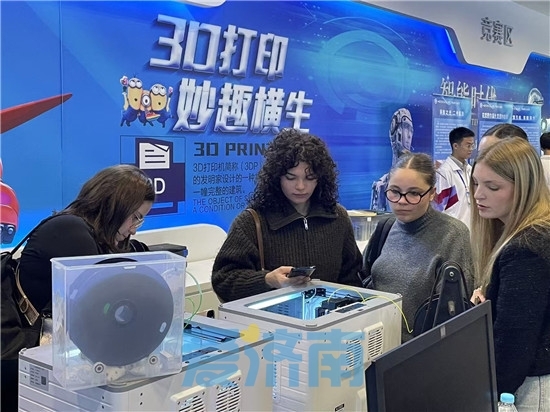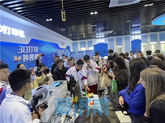 在3D打印操作台,法国学生纷纷拍照观看3D打印过程,将打印出的成品拿在手里端详把玩,爱不释手。