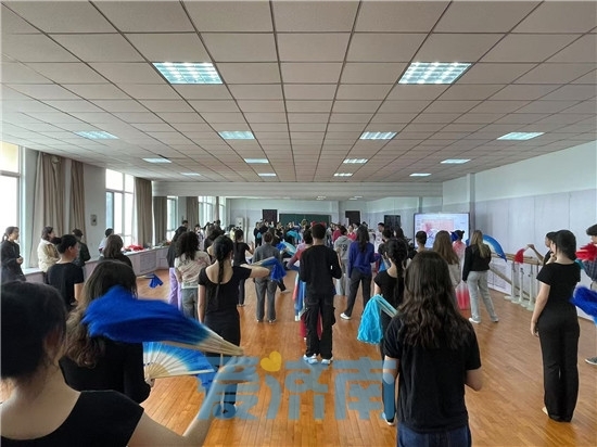 10月21日上午10:40,法国亨利·贝格森高中访问团一行33名师生来到山东省济南第二中学,法国师生一进校园,略作休整就迫不及待地开启了参观交流,第一站他们分为两组,分别体验中国舞蹈和心理团建活动。