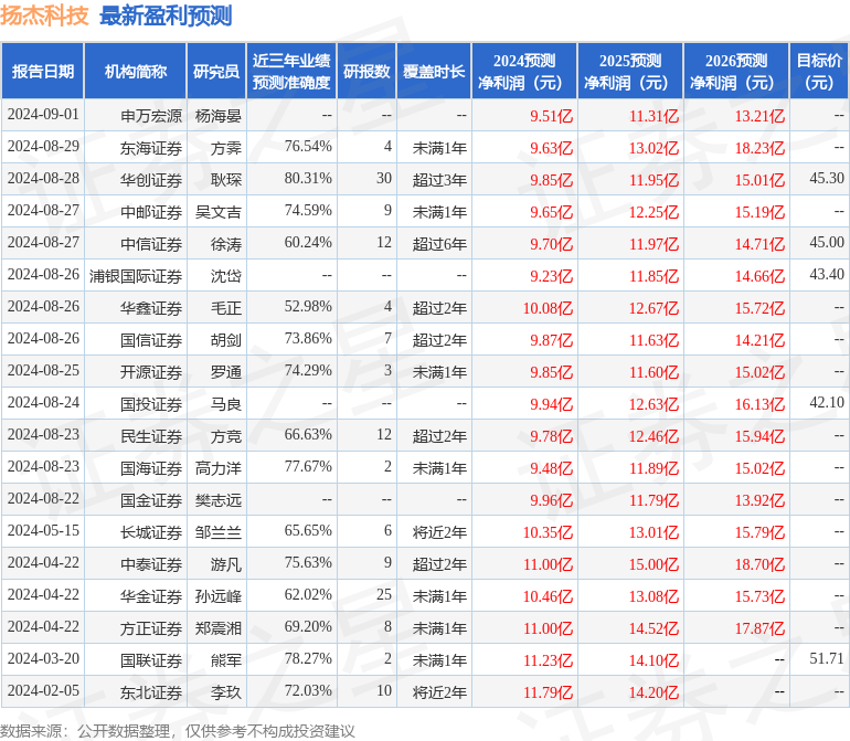 华金证券股份有限公司孙远峰,王海维近期对扬杰科技进行研究并发布了研究报告《24Q3营收创新高,持续深化“MCC+YJ”双品牌全球化布局》,本报告对扬杰科技给出买入评级,当前股价为48.62元。