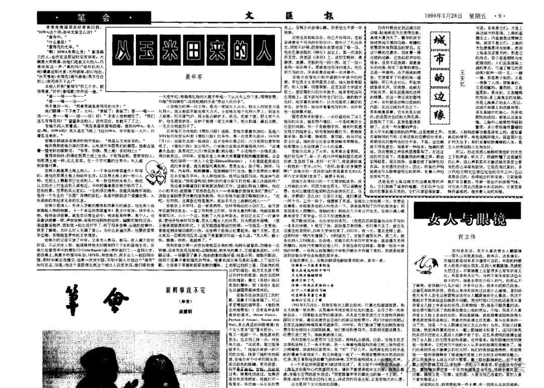 本文是聂华苓为夫君安格尔回忆录中译本而作,发表于1999年5月28日《文汇报 笔会》。