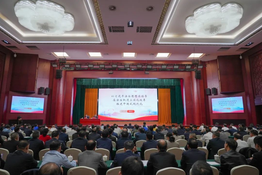 罗文江强调,全市上下要深入学习领会习近平法治思想的重大意义、丰富内涵和实践要求,坚持党的全面领导,把牢法治建设的正确方向。坚持党对法治工作的领导,必须贯穿到立法、执法、司法、守法的全过程,抓住法治政府建设这一主体工程,以上率下,善于运用法治方式深化改革、推动发展、应对风险。要服务中心大局,彰显法治建设的实践成果。要以法治保障发展,强化法治思维、用好法治办法,落实中央和省委工作部署,牢固树立“法治是最好的营商环境”理念,纵深推进“十大攻坚战”。要以法治促进改革,在法治轨道上推进改革,做到重大改革于法有据;在法治中巩固改革成果,及时把改革措施上升为法治规范。要以法治护航稳定,围绕创新基层治理,将矛盾纠纷化解纳入法治轨道,推动法治力量向基层下沉、向社区前置、向前端延伸。