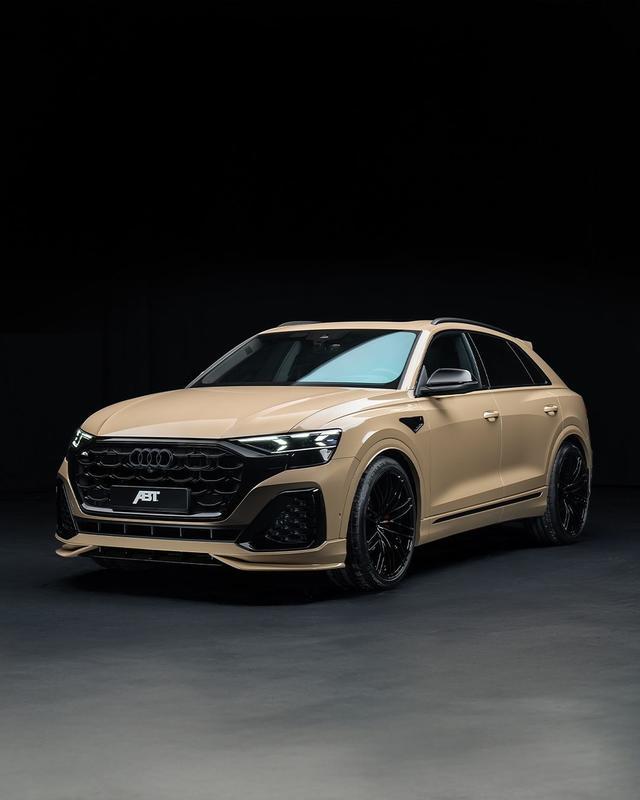 日前,新款奥迪Q8 ABT版官图正式发布。此次,新车主要是升级了外观套件,并且配备专属的金色车漆。