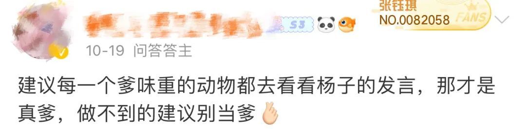 一个个的小嘴淬了毒一样,爆梗不断——“杨子喜欢给全世界当爹,除了他自己的孩子”、“建议每一个爹味重的动物都去看看杨子的发言,那才是真爹,做不到的建议别当爹”、“杨子是上辈子一直给人当儿子吗?这辈子狠狠补偿疯狂当爹”...