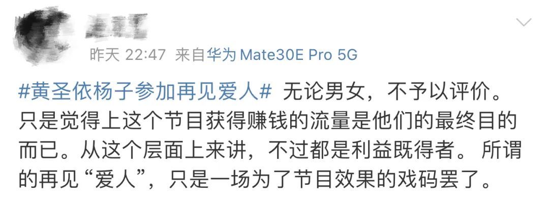 我只能说,既然他们选择接下《再见爱人》这个通告,把这些相处开诚布公地展现出来,就已经不只是黄圣依本人想不想跑的问题了。