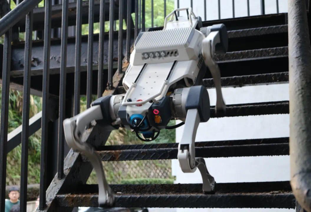 绝影X30具备强大的运动能力和感知能力,能够快速稳健地越障,并且可以准确上下镂空工业楼梯。