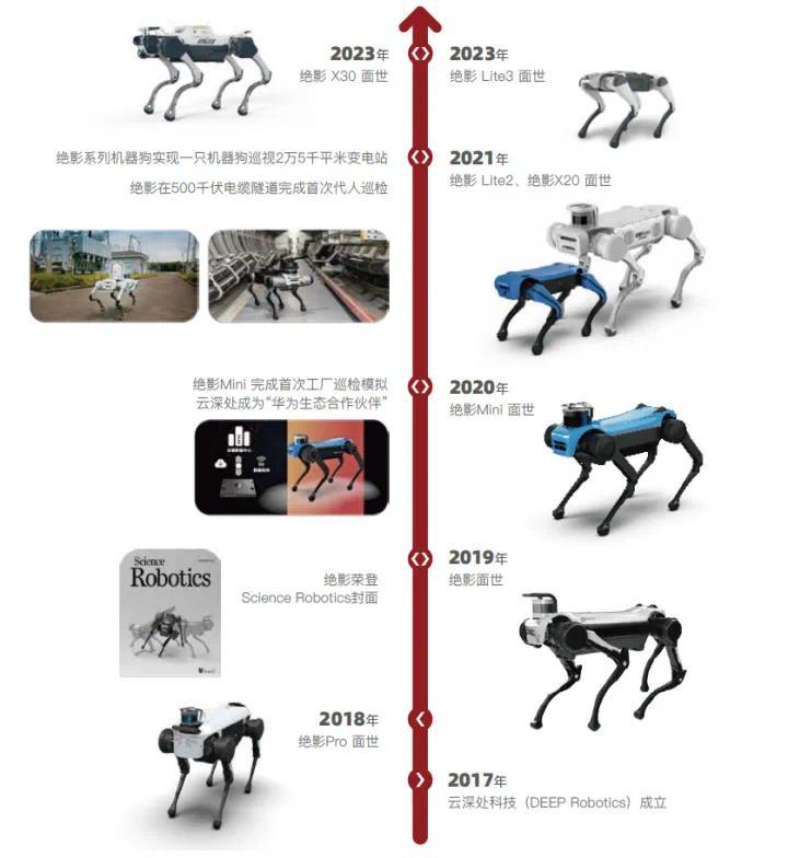 2023年3月,云深处科技推出最新一代教育科研及行业应用四足机器人绝影 Lite3,主要面向教育科研场景与资深科技爱好者。