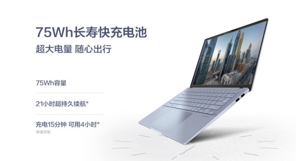 无畏Pro14还配备75Wh长寿大电池,实现约21小时全天候续航,并支持快充技术。屏幕方面,搭载2.8K 120Hz OLED华硕好屏,具备100% P3影院级广色域和100万:1超高对比度,还原真实色彩,适合专业创作任务。同时,支持DC调光和硬件级防蓝光,保护用户视力。